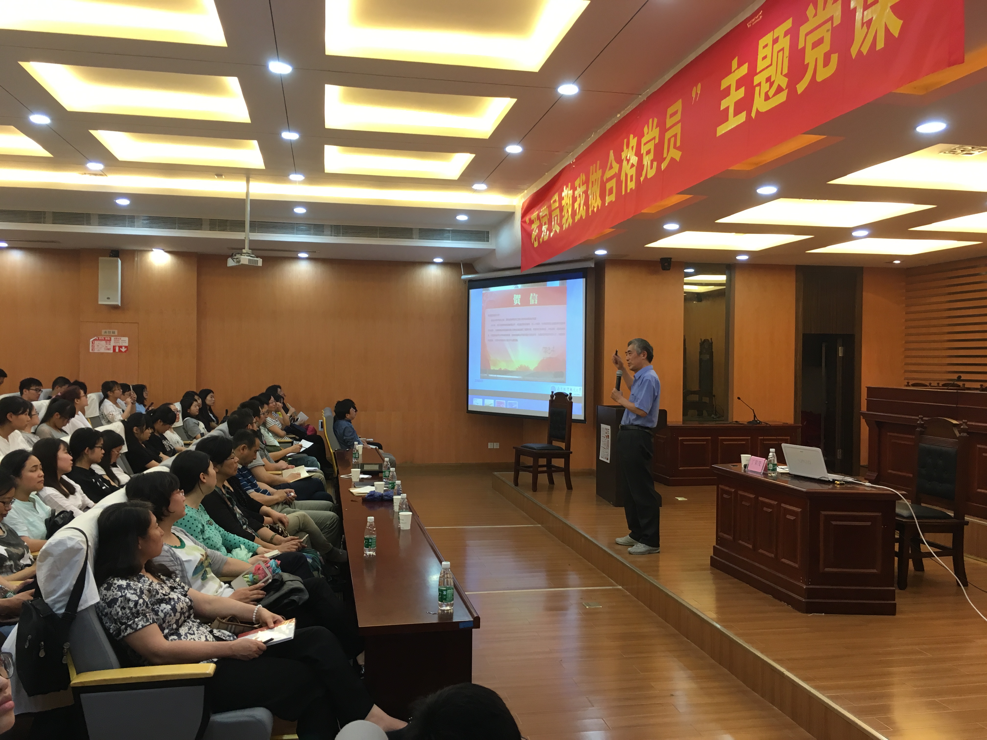 5月31日下午,人文与社会科学学院“两学一做”学习教育之“老党员教我做合格党员”主题党课在学院模拟法庭举办,校关工委常务副主任丁荣茂为人文学院、亚洲午夜国产剧场的党员同志、全体研究生党支部书记及人文学院15级本科生开讲。人文学院党委书记张启钱主持了本次党课。