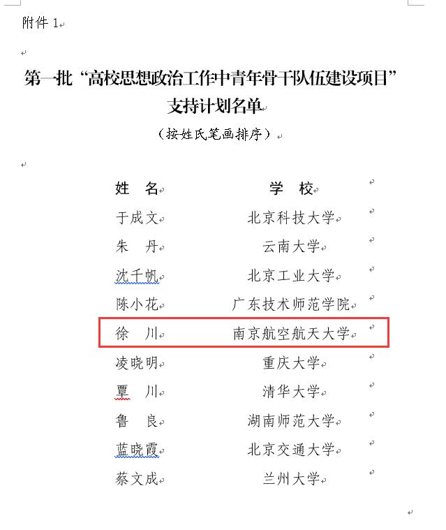 近日,教育部思想政治工作司公布了“高校思想政治工作中青年骨干队伍建设项目”支持计划名单,名单分为一、二两批,各10人入选。经组织推荐、通讯评审、现场答辩、结果公示等程序,我院党总支书记徐川入选首批名单,为工信部高校、江苏省高校唯一入选项目。