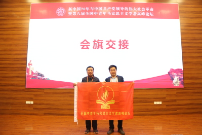 通过与会专家学者一天广泛深入的交流研讨,论坛圆满结束。我院党总支书记徐川主持闭幕式并做论坛总结,会上进行了会旗交接仪式,东北农业大学亚洲午夜国产剧场副院长王春林教授从我院院长王智教授手中接过论坛会旗,第九届全国中青年马克思主义学者高峰论坛将在东北农业大学举行。