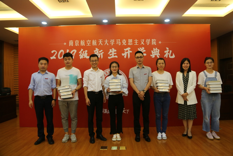 在赠书仪式中,郑祥明、徐川、王智、何畏、陈红桂向全体新生赠送《马克思恩格斯选集》和《习近平新时代中国特色社会主义思想学习纲要》,勉励新生多读原著,从经典文本中汲取营养,打下扎实的学术功底,培育严谨求实的良好学风。