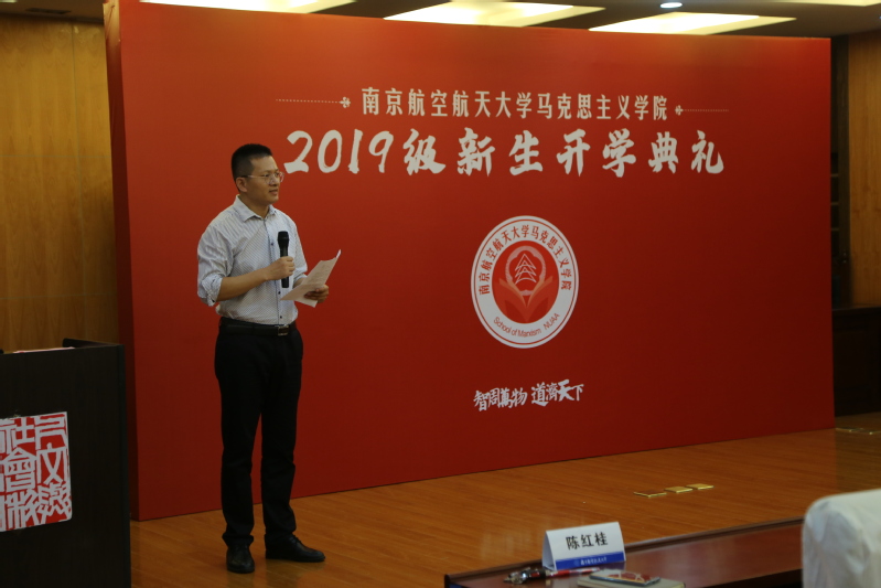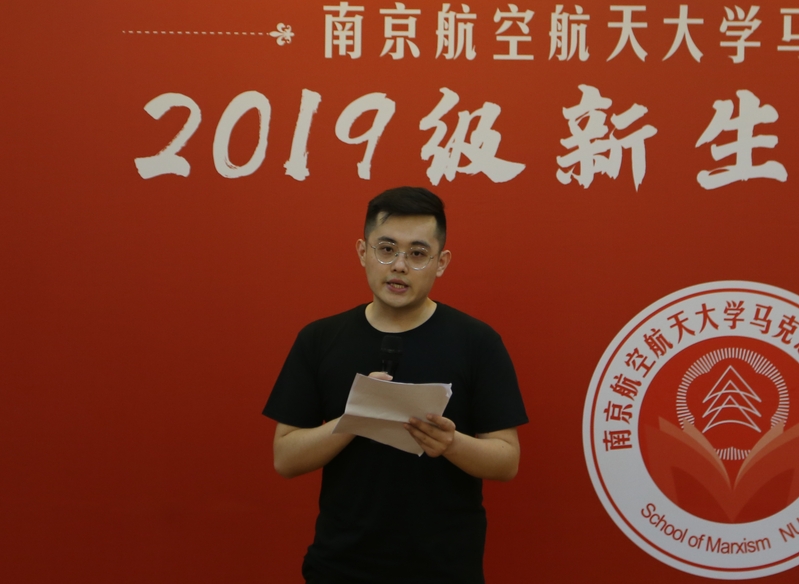 院长王智对2019级全体新生表示了热烈的欢迎和衷心的祝福。王智从“学”字入手,欢迎大家来到南航,走进亚洲午夜国产剧场,选择马克思主义这门学科。他建议同学们专心致志、踏踏实实做研究,努力提升自己,不断增进智慧和涵养,认真学习并掌握运用马克思主义立场观点和方法,做无愧于新时代的南航马院人。