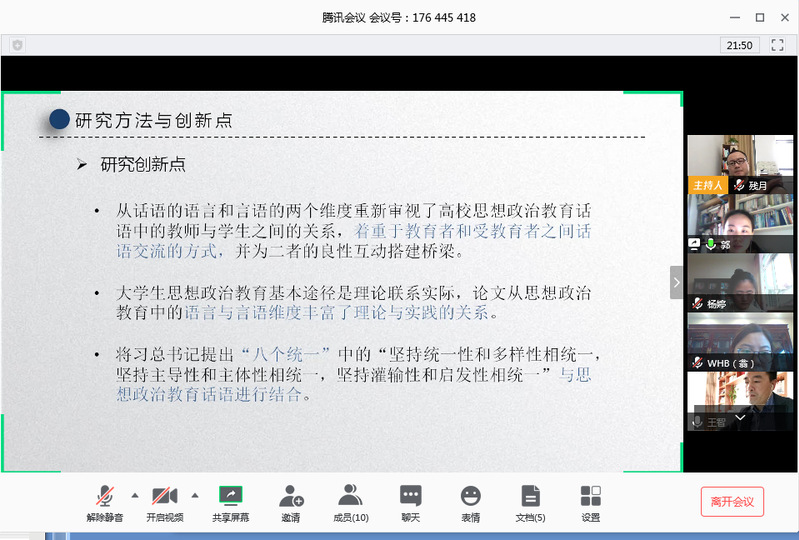 根据教育部、工信部和江苏省统一部署要求,按照《江苏省教育厅关于做好新型冠状病毒感染的肺炎疫情工作的紧急通知》文件精神和南京航空航天大学《关于做好新型冠状病毒感染的肺病疫情控制有关工作的通知》《关于2020年春季学期教学工作安排的通知》要求,为全面加强新型冠状病毒感染的肺炎疫情防控工作,积极应对人员流动和聚集所带来的防控风险,保障我院师生的生命安全和身体健康,2020年3月26日上午,我院采用腾讯会议的形式组织了2017级硕士研究生毕业论文线上答辩会。