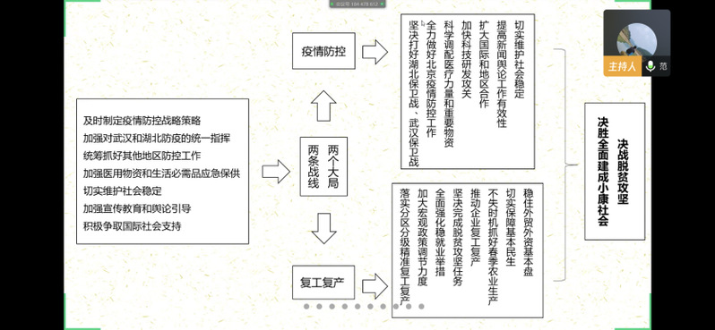信仰在战疫中闪光,三名志愿者代表在线分享了抗疫志愿服务的思考和感悟。湖北籍志愿者、入党积极分子梁宇认为,结合个人志愿服务经历,做好社区疫情防控工作要做到“三个心”,即“细心”、“耐心”和“贴心”。志愿者、预备党员贺浩旗认为,在全民防疫的紧要关头,作为一名党员就是要冲在最前线,这是新时代每一名党员必备的意识,是每一名党员应尽的责任。志愿者、入党积极分子丁亚菲认为,对比国外疫情的严峻形势,中国在这么短的时间里举全国之力抗击疫情,展现了中国温度、中国力量、中国速度,充分发挥了社会主义制度的优越性和共产党员的先锋模范作用。