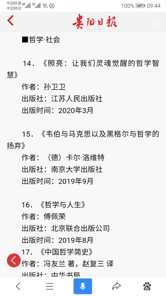 让生命感动,让灵魂觉醒,让思维启锚;把哲学带进生活,让智慧照亮人生。也许正因为秉持这样的写作理念,孙卫卫老师的著作《照亮——让我们灵魂觉醒的哲学智慧》得到了读者的青睐。发行不久,江苏人民出版社便在其微信公众号对该书进行了重点推介;4月23日,远在万里之外的贵阳市在2020读书月活动中,更是将该书列为全民阅读100本推荐好书,且位列哲学社会类书籍第一名。目前,该书在当当、淘宝、京东、苏宁各大网站均有销售。