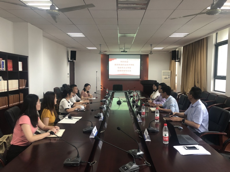 会上,院党总支书记徐川向南京铁道职业技术学院亚洲午夜国产剧场同仁的到来表示热烈欢迎,院长王智介绍了我院学科建设、师资队伍及思政课教学等情况等方面的工作情况。杨晓慧也向与会人员介绍了南铁院亚洲午夜国产剧场的建设情况。