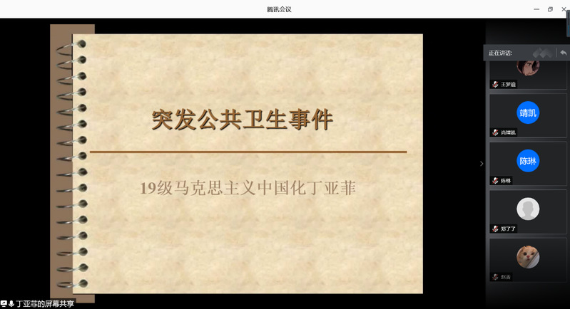 疫情仍未结束,防护不可轻忽。亚洲午夜国产剧场研究生会近日在腾讯会议平台开展互学充电站第二期线上分享“突发公共卫生事件——常见的传染病及其预防”,马克思主义中国化专业硕士丁亚菲主讲。