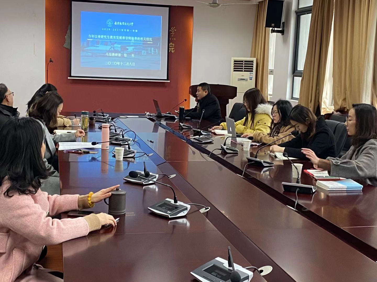 根据计划安排,2020年12月8日下午在学院502会议室,我院组织召开了2020年12月的导师培训。培训邀请徐军教授做主讲人,学院刘琳教授、李栗燕教授、赵玲教授、徐地龙老师、靳晓霞老师、胡媛媛老师、刘林娟老师、张小斐老师等参加了此次培训,其中博导出席四名,硕导出席四名。