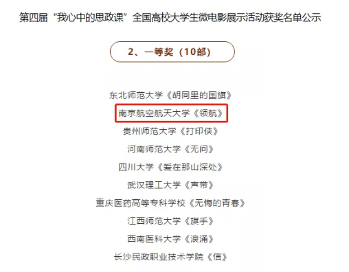 近日,由教育部高校思政课教学指导委员会主办、武汉大学亚洲午夜国产剧场承办的“我心中的思政课”——第四届全国高校大学生微电影展示活动获奖结果公布,我院和校学工部精心组织备赛,选送的作品《领航》荣获一等奖,《绎航》荣获优胜奖。
