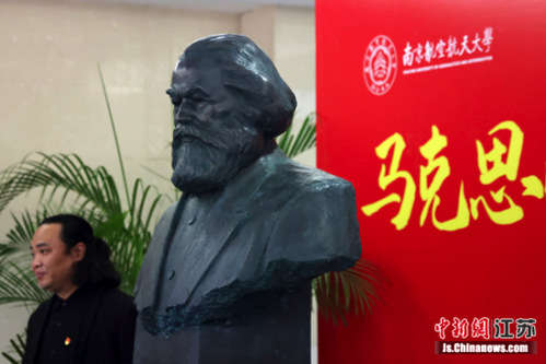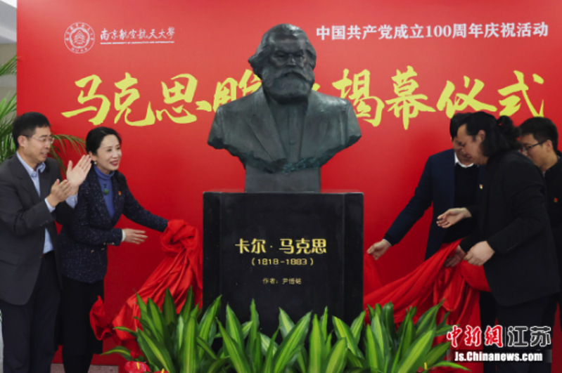 3月23日,南京航空航天大学举办卡尔·马克思雕像揭幕仪式。 中新社记者 泱波 摄