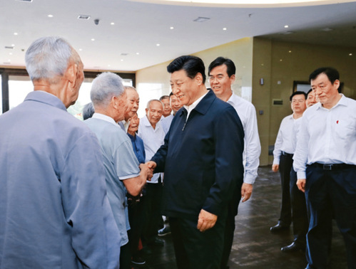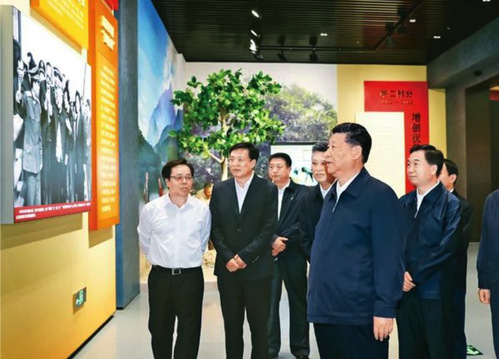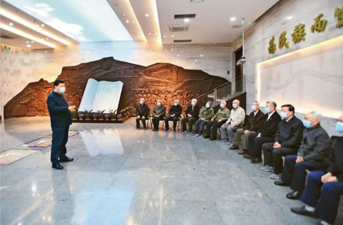 2019年5月20日至22日,中共中央总书记、国家主席、中央军委主席习近平在江西考察,主持召开推动中部地区崛起工作座谈会并发表重要讲话。这是习近平在赣州市于都县中央红军长征出发纪念馆会见于都县的红军后代、革命烈士家属代表。