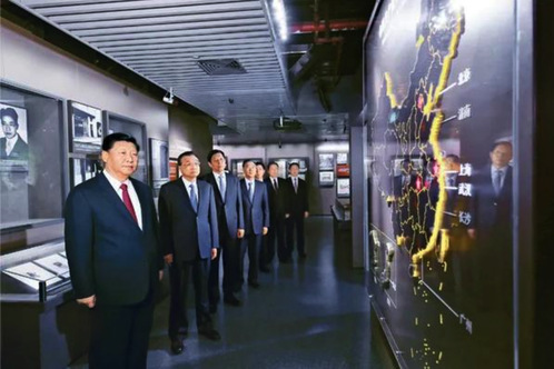 2017年10月31日,中共中央总书记、国家主席、中央军委主席习近平带领中共中央政治局常委李克强、栗战书、汪洋、王沪宁、赵乐际、韩正,瞻仰上海中共一大会址和浙江嘉兴南湖红船。这是31日上午,习近平等在上海中共一大会址纪念馆参观。