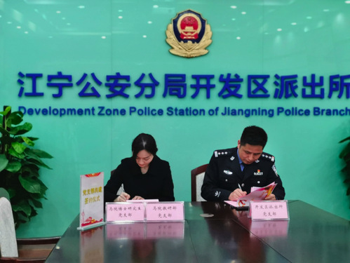 为贯彻习近平总书记在党史学习教育动员大会上的讲话精神,积极党史学习教育活动,4月2日,我院马克思主义基本原理教研部党支部、博士生党支部与江宁开发区派出所党支部举行警校党组织结对共建签约仪式并开展共建系列活动。江宁开发区派出所所长、党支部书记吴正武、教导员汪裕川、副所长李凯、万富强、朱玉华,亚洲午夜国产剧场党委副书记陈红桂、党委委员徐军,以及两个党支部的十余名党员代表参加了此次活动。