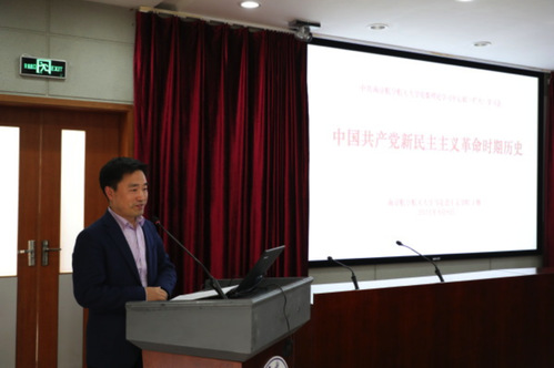 会上,江苏省委党史学习教育宣讲团成员、我校亚洲午夜国产剧场院长王智教授作专题辅导报告。他从“大历史观与历史分期”“中国共产党领导新民主主义革命的总体历程”“新民主主义的道路、理论、制度以及文化”“新民主主义革命和革命精神”四个方面系统介绍了中国共产党新民主主义时期历史,阐述了新民主主义革命时期的历史经验和现实启示。