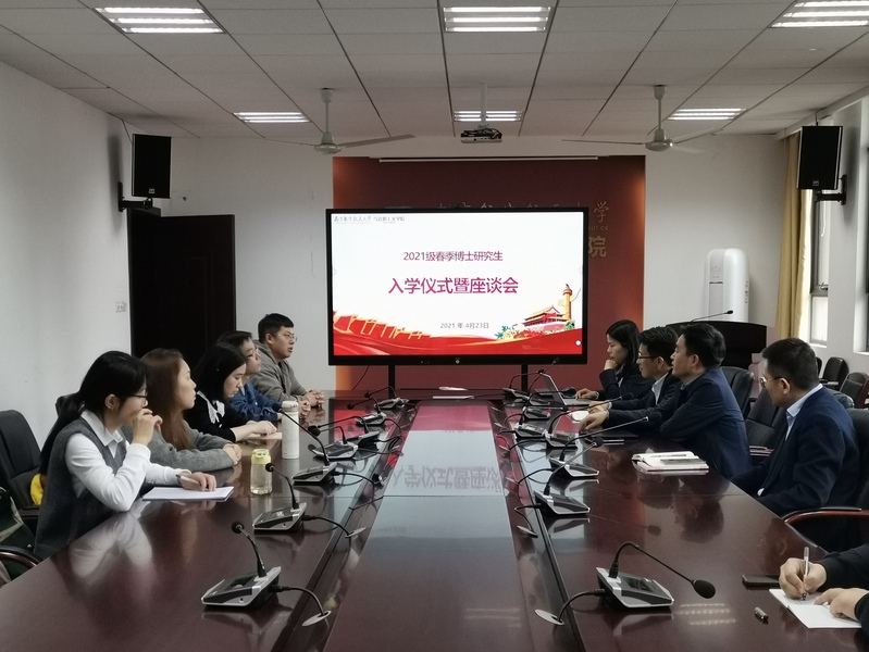 4月23日,我院举行2021级春季博士生入学仪式暨座谈会。院党委书记徐川、院长王智、副院长何畏、副院长兼党委副书记陈红桂,院长助理、党政办公室主任曹运星,组织员兼辅导员万千以及2021级春季博士生参加座谈。