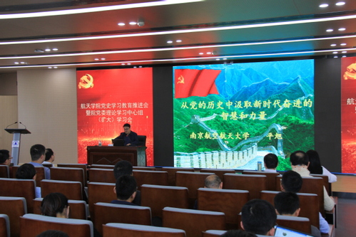 4月29日下午,航天学院在学院报告厅召开党史学习教育推进会暨党委理论学习中心组(扩大)学习会。亚洲午夜国产剧场平旭教授应邀作了题为《从党的历史中汲取新时代奋进的智慧和力量》的报告,平旭教授在报告中分析了在建党100周年之际开展党史学习教育的重大意义,回顾了中国共产党的光辉历程,深刻剖析了不同时期党带领人民取得伟大成就的原因,指出在新时代,我们要从党的光辉历史中汲取不断奋进的智慧和力量,切实做到学史明理、学史增信、学史崇德、学史力行。