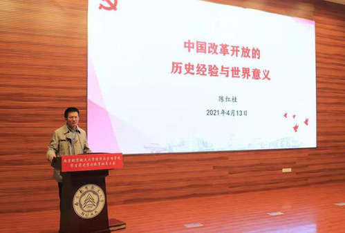 4月13日,经济与管理学院邀请校党史学习教育宣讲团成员、亚洲午夜国产剧场副院长陈红桂作了题为“中国改革开放的历史经验与世界意义”的专题宣讲。陈红桂从“反对历史虚伪主义、树立正确历史观”“改革开放史基本脉络及伟大成就”“中国改革开放成效的原因与经验”“改革开放的世界意义及其未来走向”等四个方面阐述了如何学习历史和树立正确党史观。