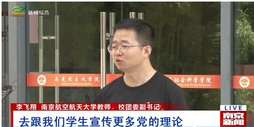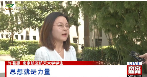 6月6日,南京广播电视台的《南京新闻》“理论宣讲大篷车开进田间地头 宣讲党的创新理论”报道中,采访了我院教师李飞翔和研究生许茗惠同学关于理论专题片《思想的力量》的观看学习体会。
