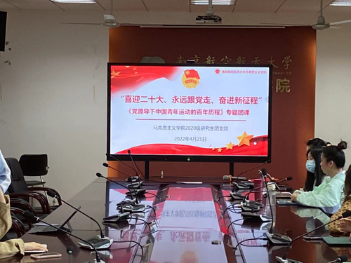 今年是党的二十大召开之年,共青团也即将迎来成立百年的历史性时刻。近日,我院2020级研究生团支部积极响应“喜迎二十大、永远跟党走、奋进新征程”主题教育实践活动号召,举办了主题为《党领导下中国青年运动的百年历程》的专题团课。本次团课由团支部书记周蕾主持。