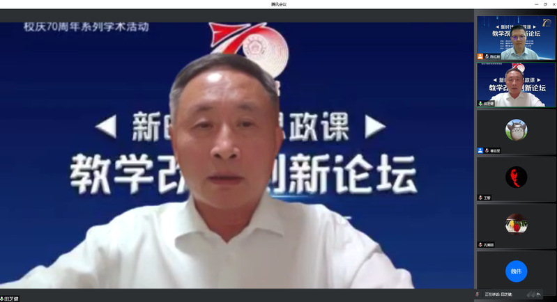 学院副院长何畏教授以“在破除错误社会思潮中固本培元”为题,分享了她在教学改革上的心路历程和心得体会。着重介绍了《理解中国》课程典型做法和建设成效。课程做到了坚持顶天立地,创新教学内容。坚持三位一体,创新教学理念。坚持团队教学,创新课堂组织,坚持实践教学,创新活动形式。坚持学科交叉,创新团队建设。坚持教研一体,实现同步创新。最后她说明了课程团队建设的成效和重要意义。