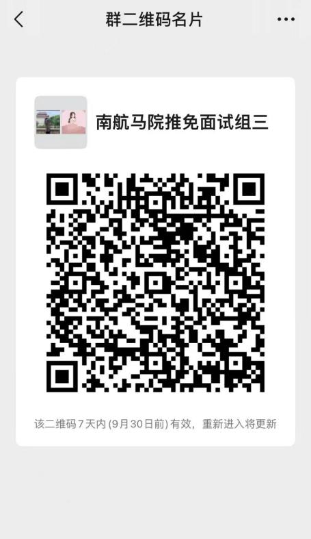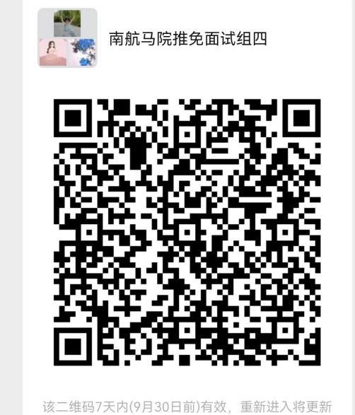 请进入面试的同学最迟于92316:00前进入对应的微信群,如不能参加924日的线上面试,请提前联系025-52116005  胡老师告知!