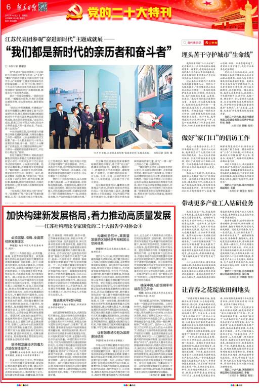 10月21日,《新华日报》第6版“党的二十大特刊”刊发了对我院何畏教授的特约采访《加快构建新发展格局,着力推动高质量发展——江苏社科理论专家谈党的二十大报告学习体会④》,现将全文转发如下: