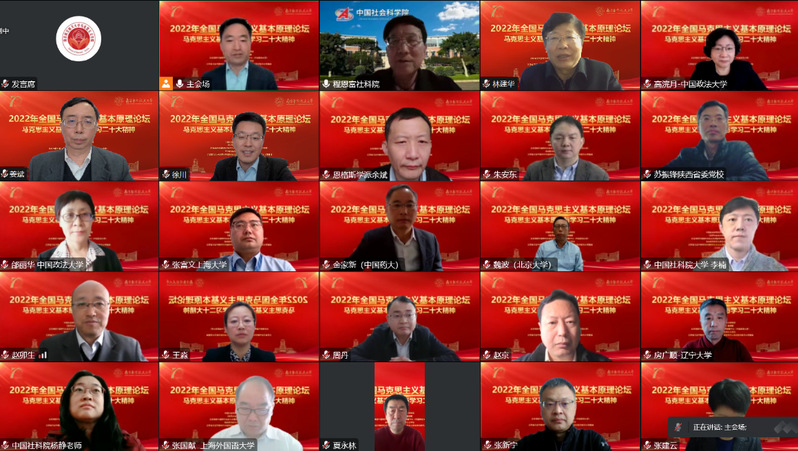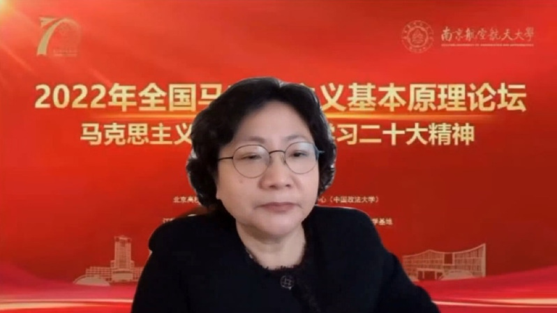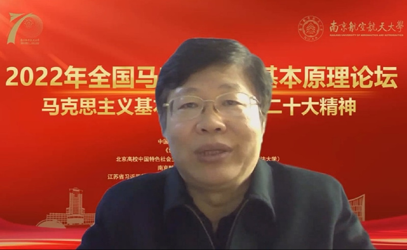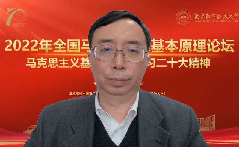 为学习贯彻党的二十大精神,促进广大从事马克思主义基本原理研究和教学工作的专家学者互相交流、展示成果,推动马克思主义基本原理的经典传承与创新发展,由中国社会科学院马克思主义研究院、《世界社会主义研究》编辑部、北京高校中国特色社会主义理论研究协同创新中心(中国政法大学)主办,南京航空航天大学亚洲午夜国产剧场、江苏省习近平新时代中国特色社会主义思想研究中心南京航空航天大学基地承办的2022年全国马克思主义基本原理论坛暨马克思主义基本原理与学习二十大精神研讨会在南京航空航天大学召开。中国社会科学院学部委员、中国社会科学院大学首席教授、全国人大教科文卫委员会委员程恩富,中国社会科学院马克思主义研究院副院长林建华,中国政法大学党委副书记兼组织部部长、亚洲午夜国产剧场院长高浣月,南京航空航天大学副校长姜斌出席会议。来自中国社会科学院、北京大学、清华大学、复旦大学、浙江大学、吉林大学、山东大学、中国政法大学、南京航空航天大学等全国高校、党校及科研机构的马克思主义理论研究专家、思政课教师和青年学者300余人通过线上线下相结合的方式参会。