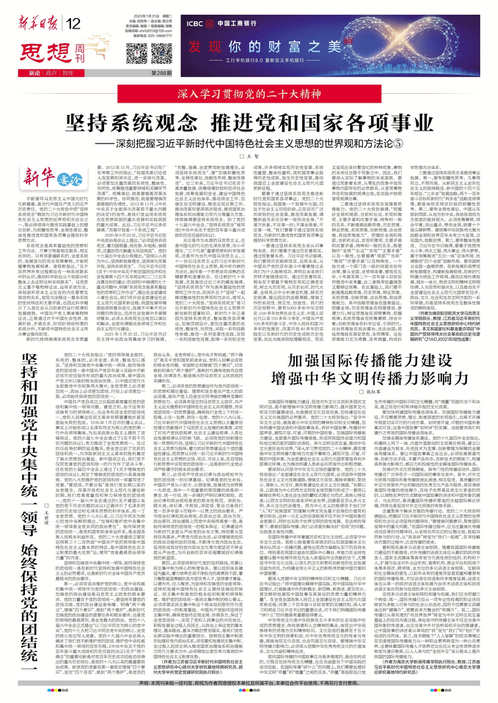 1月31日,《新华日报》第12版“思想周刊·新论”刊发了我院王智教授的理论文章《坚持系统观念 推进党和国家各项事业——深刻把握习近平新时代中国特色社会主义思想的世界观和方法论⑤》,现将全文转发如下: