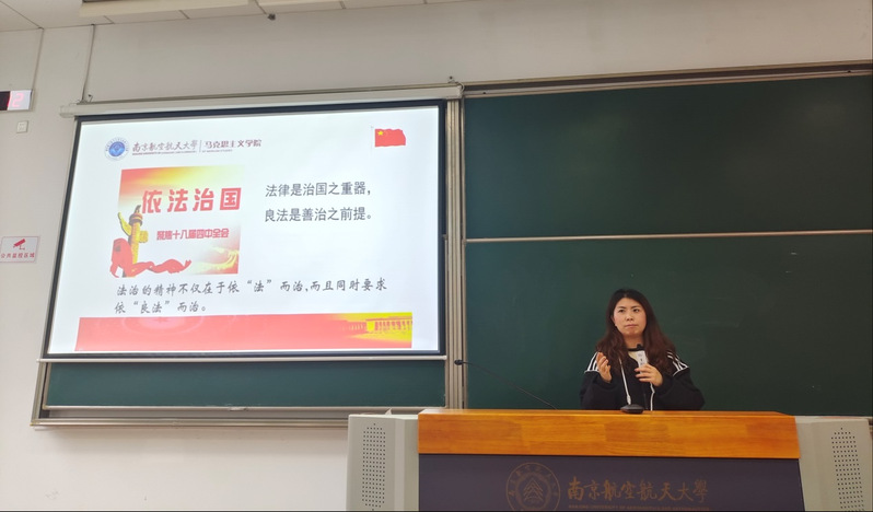 朱晓敏老师以国庆七十周年花车为导入引出“民主与法治”的主题,以“陆勇案”为话题层层深入,探讨“民主与法治的关系”。在此基础上讲解法治的要求与法治的意义,最后通过2022年“新时代推动法治进程十大案件”延伸到全面推进依法治国的总目标。朱晓敏老师在课堂设置中积极引导学生思考与探究,理论与实践相结合,将学生的困惑与思考剥丝抽茧,讲授言近旨远。