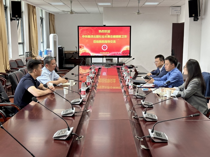 5月5日上午,中央编译出版社社长、总编辑郗卫东,对外传播中心负责人闫晓东一行莅临我院调研交流。院长王智、院党委副书记阙愚、副院长陈红桂等参加座谈。