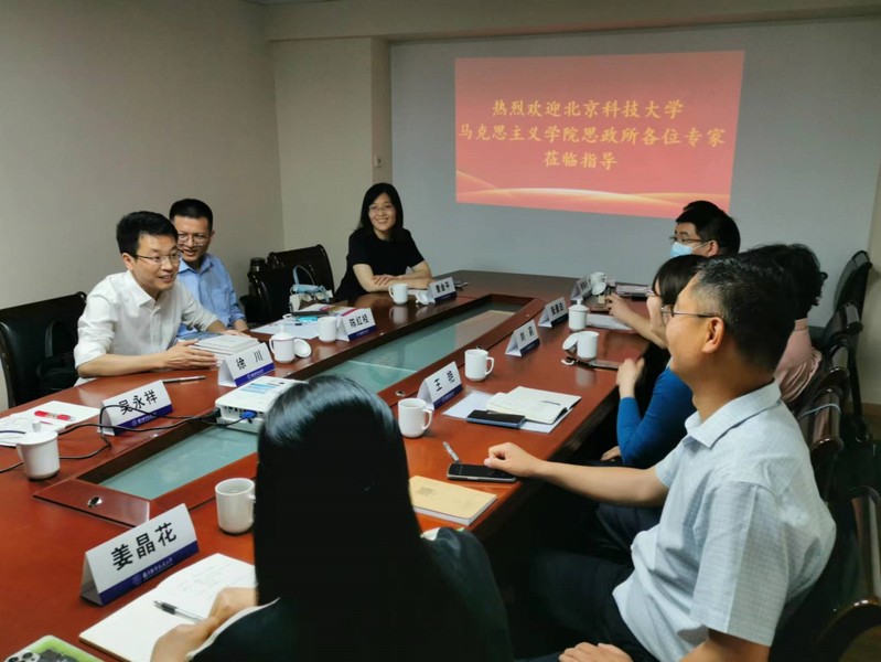 近日,北京科技大学亚洲午夜国产剧场思想政治教育研究所党支部书记王艳一行来我院调研交流。院党委书记徐川、副院长陈红桂出席调研活动,思想道德与法治教研部党支部书记吴永祥、教研部主任董金平参加活动。