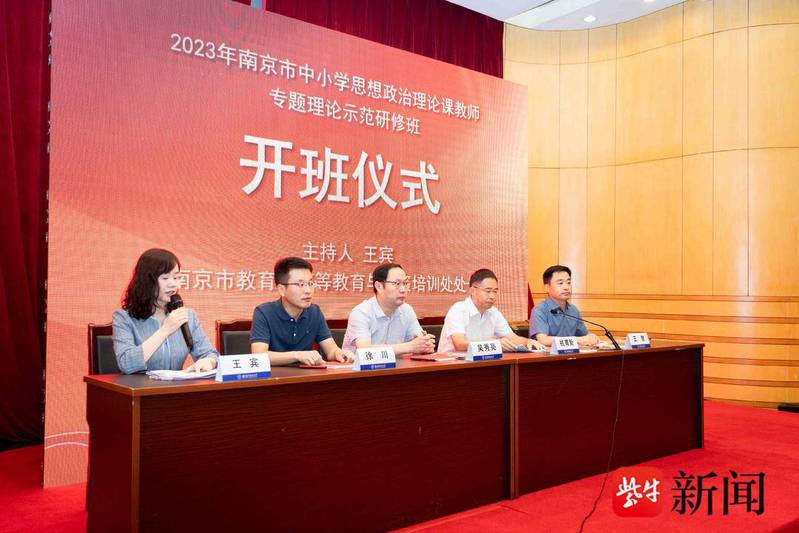 8月8日,南京市首批中小学思政课教师培训基地授牌仪式及2023年南京市中小学思想政治理论课教师专题理论示范研修班开班式在我校举行,校党委副书记、纪委书记杭育新,南京市教育局局长、市委教育工委书记吴秀亮参加活动。