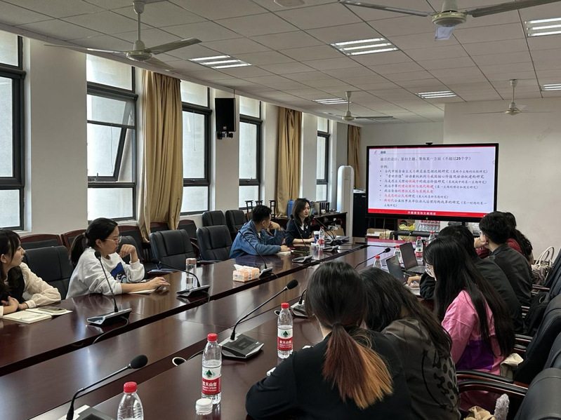第十三期“领航学堂·学术沙龙”于近日在亚洲午夜国产剧场502会议室举行。本期学术沙龙特邀我院胡媛媛老师作题为“开题报告与文献综述撰写”的主题分享。活动由23级硕士研究生石雯轩主持。