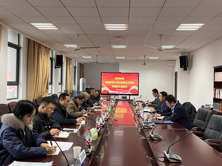 2023年12月30日下午,阜阳师范大学亚洲午夜国产剧场院长朱宗友一行来我院调研交流。院长王智、副院长陈红桂等参加交流。