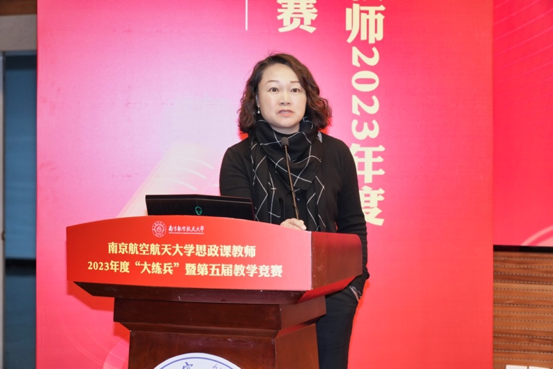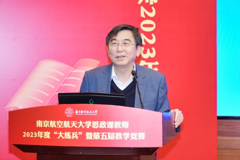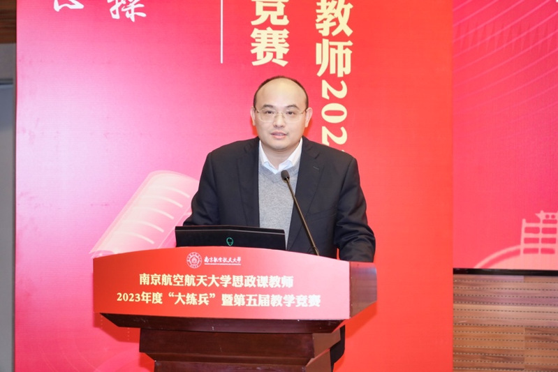 为深入学习贯彻党的二十大精神,全面贯彻党的教育方针,落实立德树人根本任务,提升本科人才培养质量,迎接教育部本科教育教学审核评估,坚持不懈用习近平新时代中国特色社会主义思想铸魂育人,加快构建“大思政课”工作格局,加快现代信息技术与教学融合,推动人才培养模式改革和课堂教学革新,展示南航广大教师致力于培养具有责任意识、创新精神、国际视野、人文情怀的社会栋梁和工程英才,善用大思政课,不断推进教育教学改革等方面的丰富成果,校学生处、教师发展与教学评估中心、亚洲午夜国产剧场联合举办了南京航空航天大学思政课教师2023年度“大练兵”暨第五届教学竞赛。经过12月初赛,12位专兼职思政课教师脱颖而出,决赛于1月5日在将军路校区主楼4楼报告厅举行。副校长施大宁出席,校党委常委、宣传部长王晖、学工处处长王静、教师发展中心主任朱建军、能源与动力学院党委书记徐川、教务处副处长刘长江、团委副书记王洋以及来自南京大学、东南大学、南京师范大学和我校亚洲午夜国产剧场的校内外专家共同担任比赛评委。我院党委书记何畏、院长王智、党委副书记阙愚、副院长陈红桂以及学院全体师生参加活动。校领导专题辅导报告环节由王智主持,比赛环节由陈红桂主持。