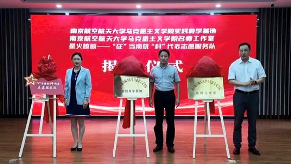 双方共同发布首批共建项目清单,涵盖基地互建、课题研究、理论宣讲、志愿服务、互动交流五个方面,并递交了共建协议。活动为“南京航空航天大学马克思主义学院实践教学基地”“南京航空航天大学亚洲午夜国产剧场名师工作室”“星火燎原——‘征’当南航‘科’代表志愿服务队”揭牌。